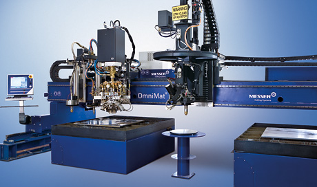 OmniMat® is a large size CNC cutting machine with a heavy-duty structure and multi axis control, suitable for a wide field of applications and complicated cutting jobs. A number of different torch suspensions with tool holders is available, e.g. marking tools, punching and drilling devices, strip cutting attachments, triple torch or rotating triple torch, plasma arc contour bevel unit.